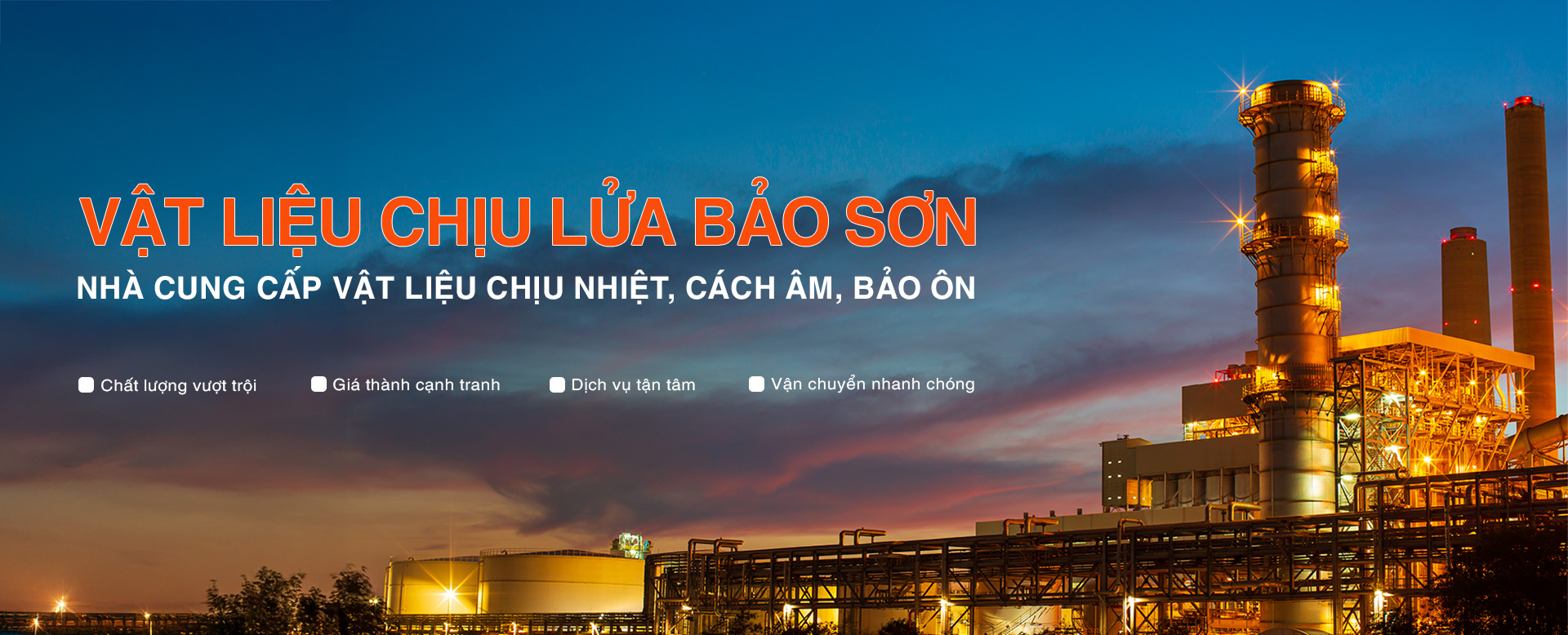 Công ty TNHH Công Nghiệp Bảo Sơn là đơn vị hoạt động chuyên sâu trong lĩnh vực vật liệu chịu lửa với hơn 18 năm kinh nghiệm. Chúng tôi cung cấp giải pháp toàn diện từ tư vấn kỹ thuật, cung ứng vật liệu và thi công lắp đặt cho các công trình công nghiệp nhiệt như lò hơi, lò nung, lò luyện kim. Với đội ngũ kỹ thuật có chuyên môn cao và mạng lưới phân phối rộng khắp, Bảo Sơn cam kết mang đến chất lưng vượt trội – hoạt động bền bỉ cho mọi công trình.